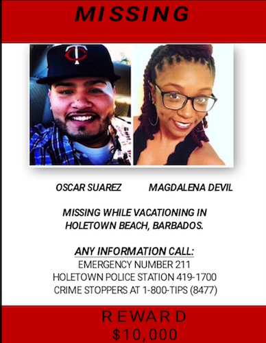 Local NewsNews Reward offered by Barbados Today 27/06/2019 written by Barbados Today 27/06/2019 4 min read A+A- Reset Oscar Suarez and Magdalena Devil FacebookTwitterLinkedinWhatsappEmail 562 Relatives of Oscar Suarez are eternally grateful for the efforts of Barbados’ law enforcement agencies to find him and his missing partner, Magdalena Devil, but 72-hours of uncertainty over their mysterious disappearance has started to take its toll. Oscar’s cousin, Thais Sonnabend-Aguilar, told Barbados TODAY family members are now “emotionally drained” but have continued praying and waiting for any information about the couple’s whereabouts. So earnest are they in their efforts to locate their loved one and his companion, the family has even offered a US$10,000 reward for anyone with meaningful information on the couple’s disappearance. Aguilar revealed a family network from as far away as California and as close as Florida and Puerto Rico has been following the developments and holding family meetings with Oscar’s mother, Ninfa Urrutia who is also on the island. “We feel better knowing the people of Barbados have been ensuring they [family members] stay in the loop and we are thankful they have been so accommodating. We know that you are doing everything you can to help us right now. “We just wish we had the answers that we were looking for and that’s the emotionally draining part of everything. We just want them back or found and we don’t have that yet. We have pieces, but the pieces aren’t coming together. You Might Be Interested In Crystal Beckles-Holder, 2nd runner up in regional competition GUYANA: Body of child found after gold mine collapses Barbadians asked to help with return tickets for Haitians “Right now we are holding onto the hope that they are okay and this is going to be the best case scenario. That’s what we are praying for as a family,” said the tearful cousin. Ever since the couple went missing on Monday afternoon, family members have been pleading with U.S officials for assistance and have even contacted local healthcare providers to find out if anyone fitting the description of the couple had been admitted. “We are begging for any piece of information that will bring Maggie and Oscar back safely. We just want them to come home and we’re just begging from the bottom of our hearts,” she said, struggling to hold back her tears. “We are a very large family and he is an amazing father and brother and cousin and son and we just want him home,” she repeated. During an emotional 20-minute interview, Aguilar revealed that two sisters and four brothers were among the concerned family members. But the emotions of Oscar’s two children, a five-year-old daughter and a ten-year-old son, have been hardest to protect. “We raised our kids together and they still don’t know about the situation with their father. When my niece says I want to talk to my daddy…we feel like we have to give them this ‘run around’ to keep them from asking questions. It’s emotional for us because we don’t know what else we can do. “She’s five and she doesn’t get that yet. She doesn’t understand why she can’t talk to her dad whenever she wants. So it’s hard for us and it’s heartbreaking as a family that we are trying not only to cope for ourselves, but we can’t break down in front of our children.” Barbados TODAY understands Oscar, 35 is an assistant director of dining services at food service company, Compass Group and his girlfriend Magdalena, 25 had just opened a small bakery. “The few times I met her, I found her to be an amazing young lady and very talented. She has her own small bakery and that was her dream and that’s what she wanted to do,” said Aguilar, who revealed she had spoken with her cousin, Oscar just two days before he left for Barbados. “They had been planning this for over a year and they were very excited to be taking a vacation to be getting away from the hustle and bustle of city life and when he landed and checked into Barbados, he sent me a picture of his view from his room and I told him to enjoy his well-deserved vacation. I didn’t know of a more deserving person to get such an amazing vacation.” The couple was staying at the Starfish Discovery Bay Hotel since Saturday. According to reports, the two rented a jet ski from Aftneal Bear Abbey on the beach near Holetown around 3 p.m. and have not been seen or heard from since. Officials from the Royal Barbados Police Force, the Regional Security Service and the Coast Guard have been scouring the area from the sky and on the ocean. Barbados TODAY understands a submarine is also being used to locate the couple. Family members from both families were flown into the country yesterday and are being hosted by the Barbados Tourism and Marketing Incorporated. Barbados TODAY has also been in contact with other family members including Oscar’s mother, Ninfa Urrutia and his brother Danny Suarez who are both struggling to come to grips with the unfolding situation. kareemsmith@barbadostoday.bb Barbados Today Stay informed and engaged with our digital news platform. The leading online multimedia news resource in Barbados for news you can trust. You may also like Minister Archer calls for greater role for small states in global development 19/04/2026 MSMEs urged to strengthen structure and planning for survival 19/04/2026 Cancer charity stresses no discrimination in services 19/04/2026