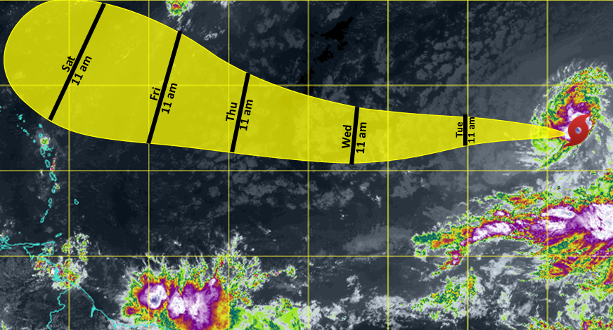 As of 11 a.m., the storm was located approximately 2 120 miles northeast of Barbados.