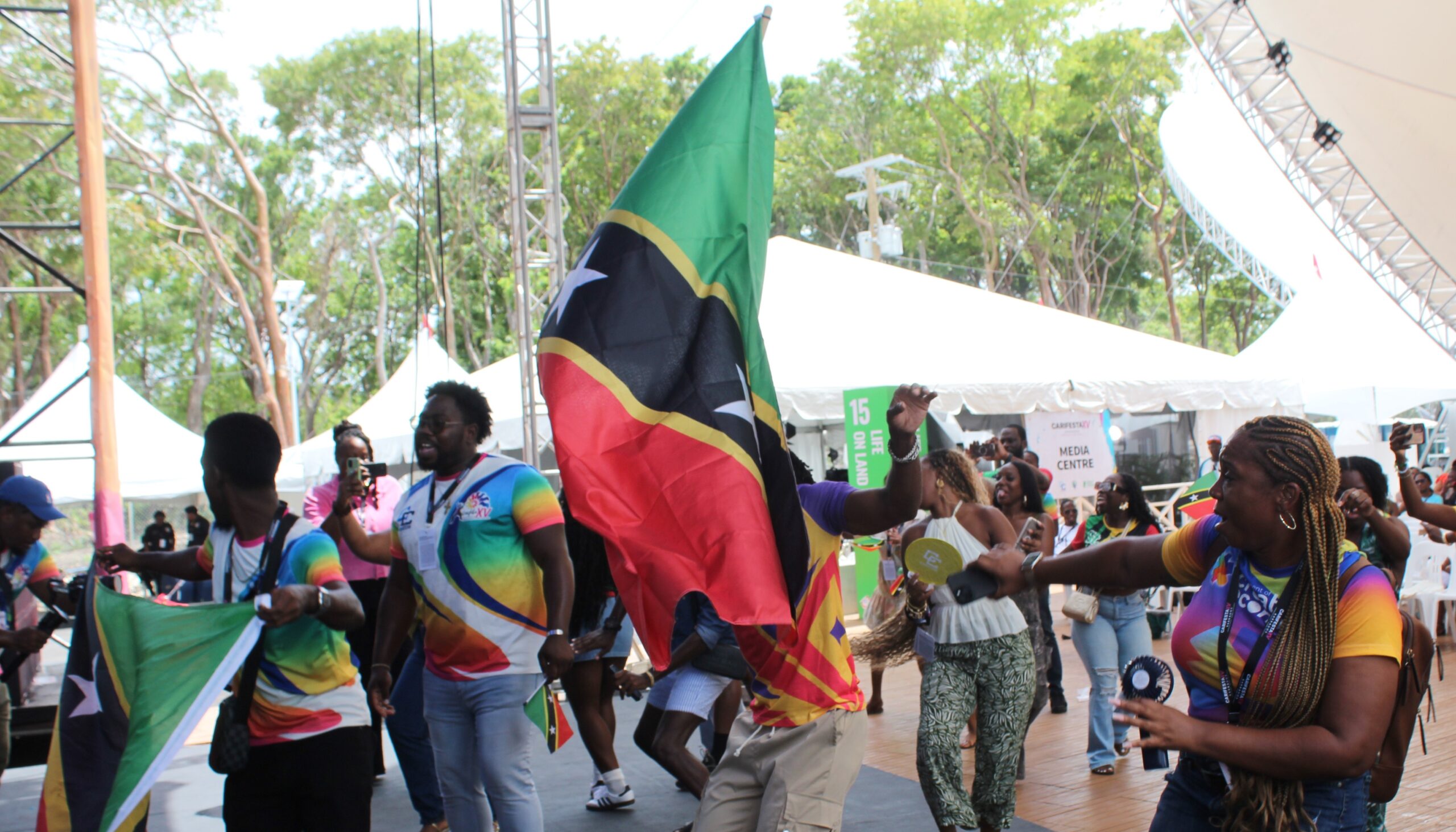 CarifestaLocal News St Kitts and Nevis brings music and joy to CARIFESTA XV by Barbados Today 30/08/2025 written by Barbados Today 30/08/2025 1 min read A+A- Reset Members of the St Kitts and Nevis delegation. Share FacebookTwitterLinkedinWhatsappEmail 259 by Tracy Moore St Kitts and Nevis made its mark at CARIFESTA XV with a vibrant music showcase that had the delegation and some audience members waving flags high and soaking in the rhythms. It was the delegationโs first time in Barbados and their first performance at CARIFESTA XV, making the moment all the more special. Some of the performers. Their lineup of acts delivered crowd-pleasing tunes, filling the stage with rhythm, pride, and unmistakable energy. Adding to the excitement, members of the delegation took to the dance floor, showing off their local dance moves with style and confidence. Flags waved, smiles beamed, and the groupโs enjoyment was contagious, turning the showcase into a lively celebration of their culture. The St Kitts and Nevis delegationโs debut was more than just a performance โ it was a statement of presence. With their blend of music, movement, and national pride, they brought the heat to CARIFESTA XV, proving that the festival truly thrives on the diversity and spirit of the entire Caribbean family. You Might Be Interested In โRocky startโ but CARIFESTA XV gaining ground, says culture minister Rocky Dawuni: A homecoming of rhythm, spirit and unity Pan in Paradise: Barbados orchestras dazzle CARIFESTA XV Barbados Today Stay informed and engaged with our digital news platform. The leading online multimedia news resource in Barbados for news you can trust. You may also like CCJ reserves judgment in case of Husbands 18/03/2026 Browne backs budget but urges tougher action on major issues 18/03/2026 PM make case for energy security as resilience to global shocks 18/03/2026